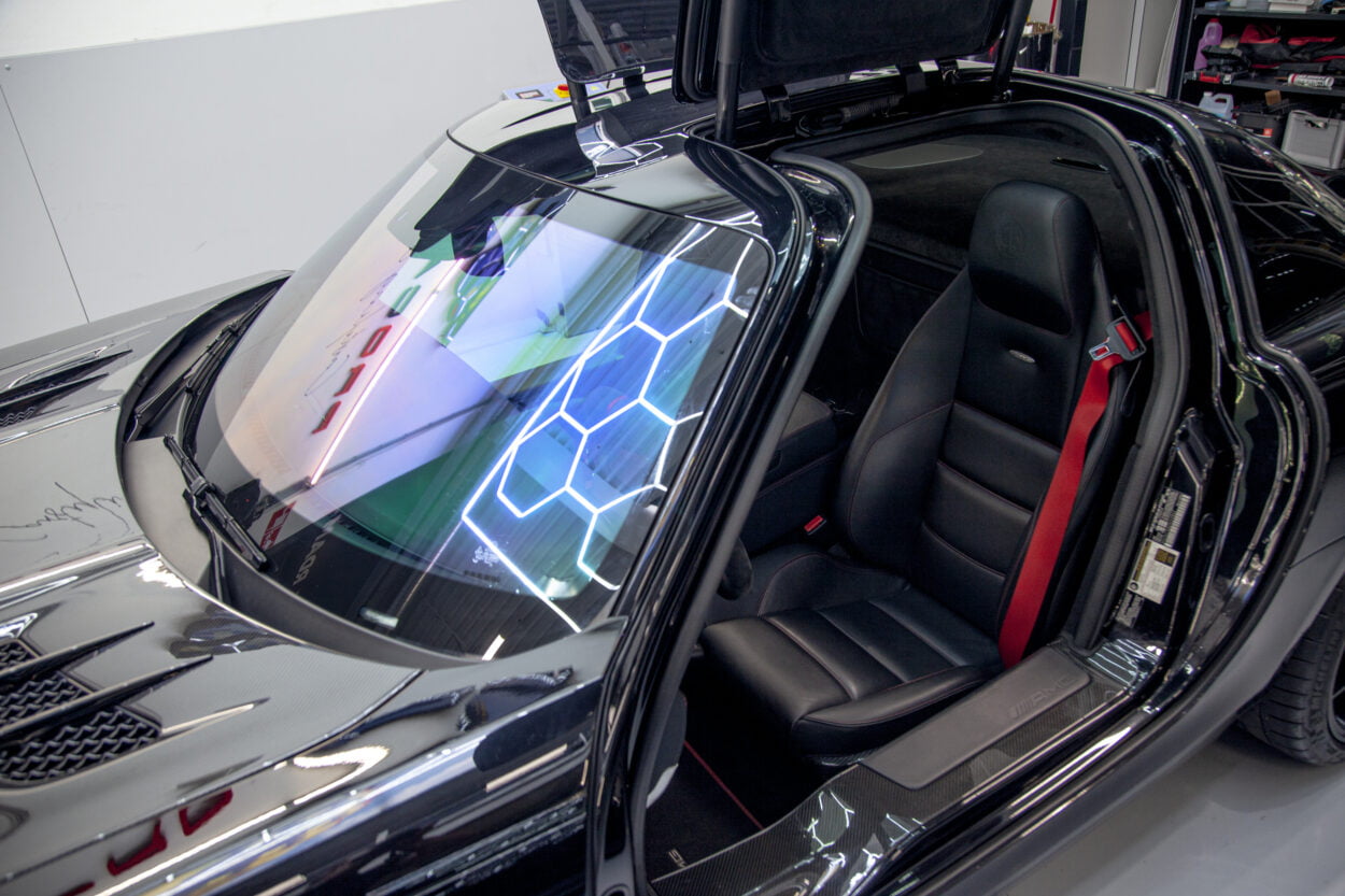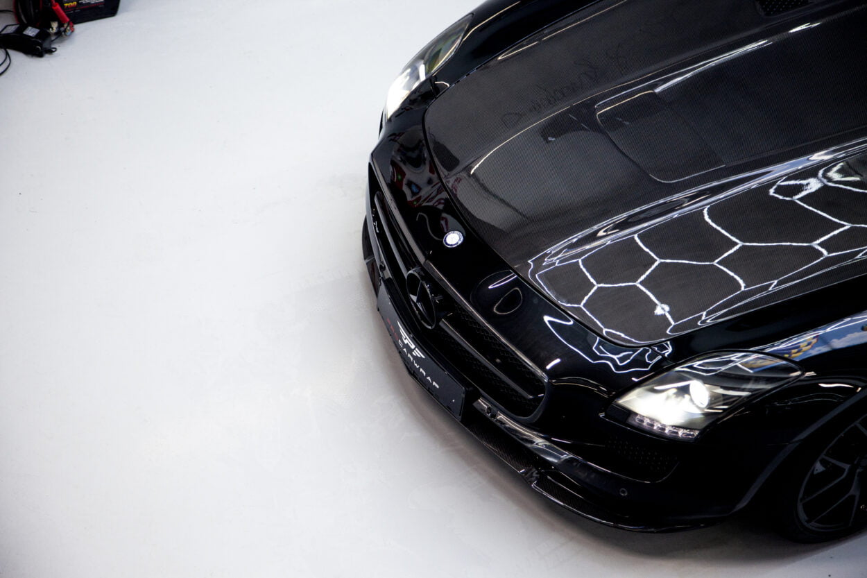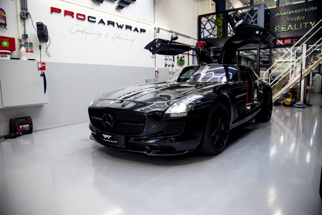 Oh, en niet te vergeten dat hij een brutale 6.3 liter V8 motor onder de motorkap heeft. De Mercedes SLS AMG is echter niet bijzonder verfijnd, dat is het moment wanneer wij bij Procarwrap om de hoek komen kijken.